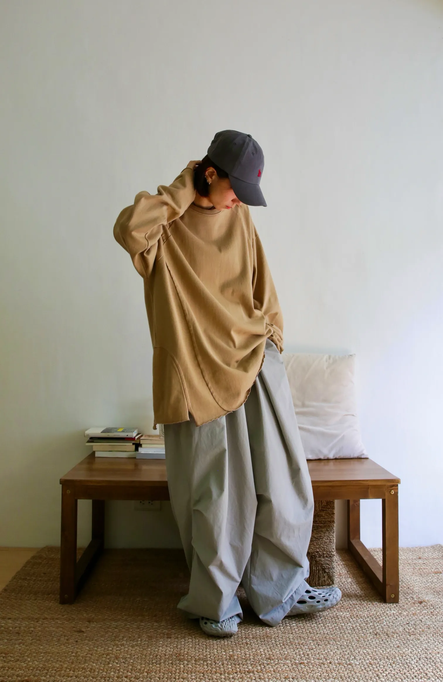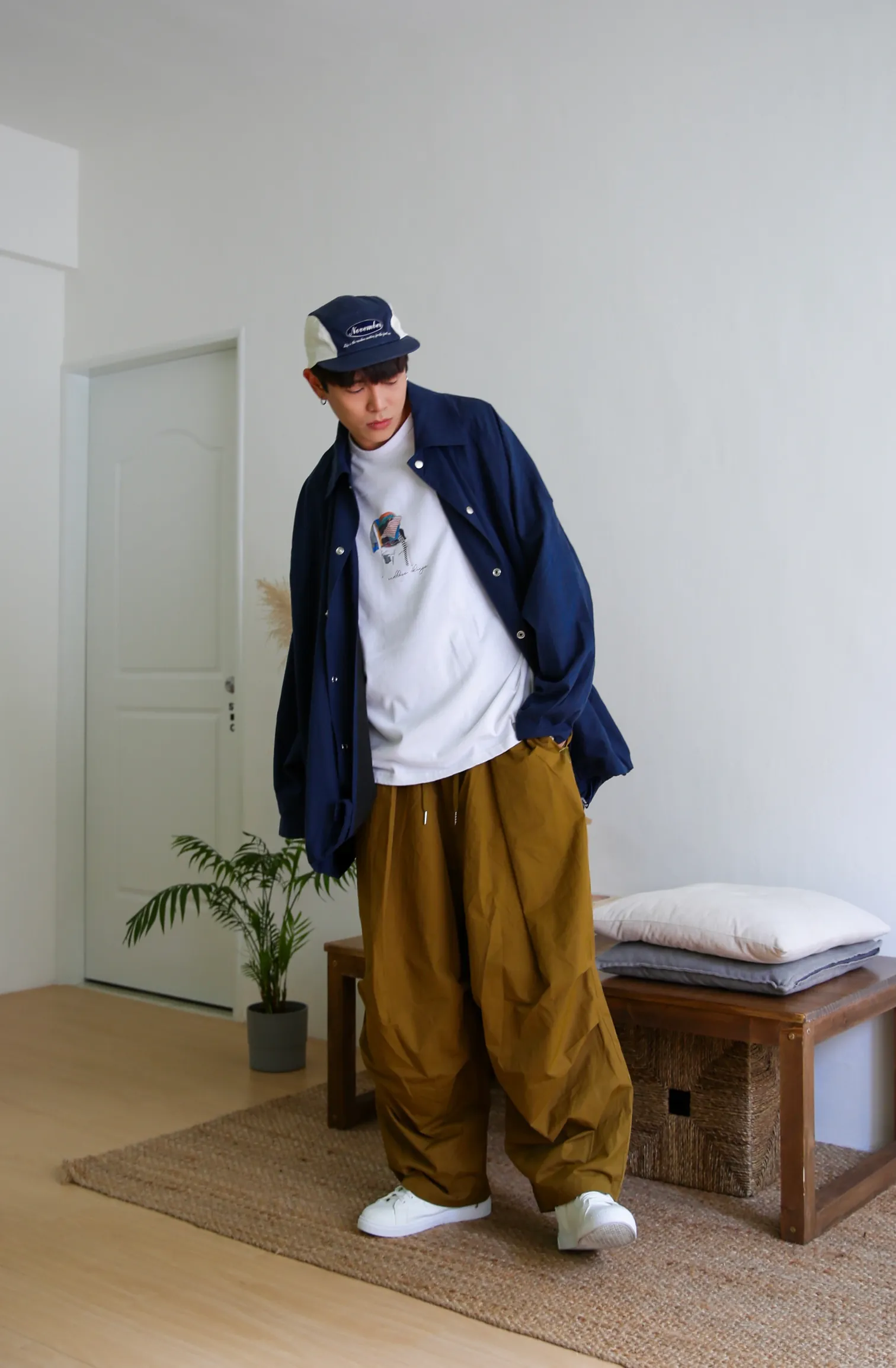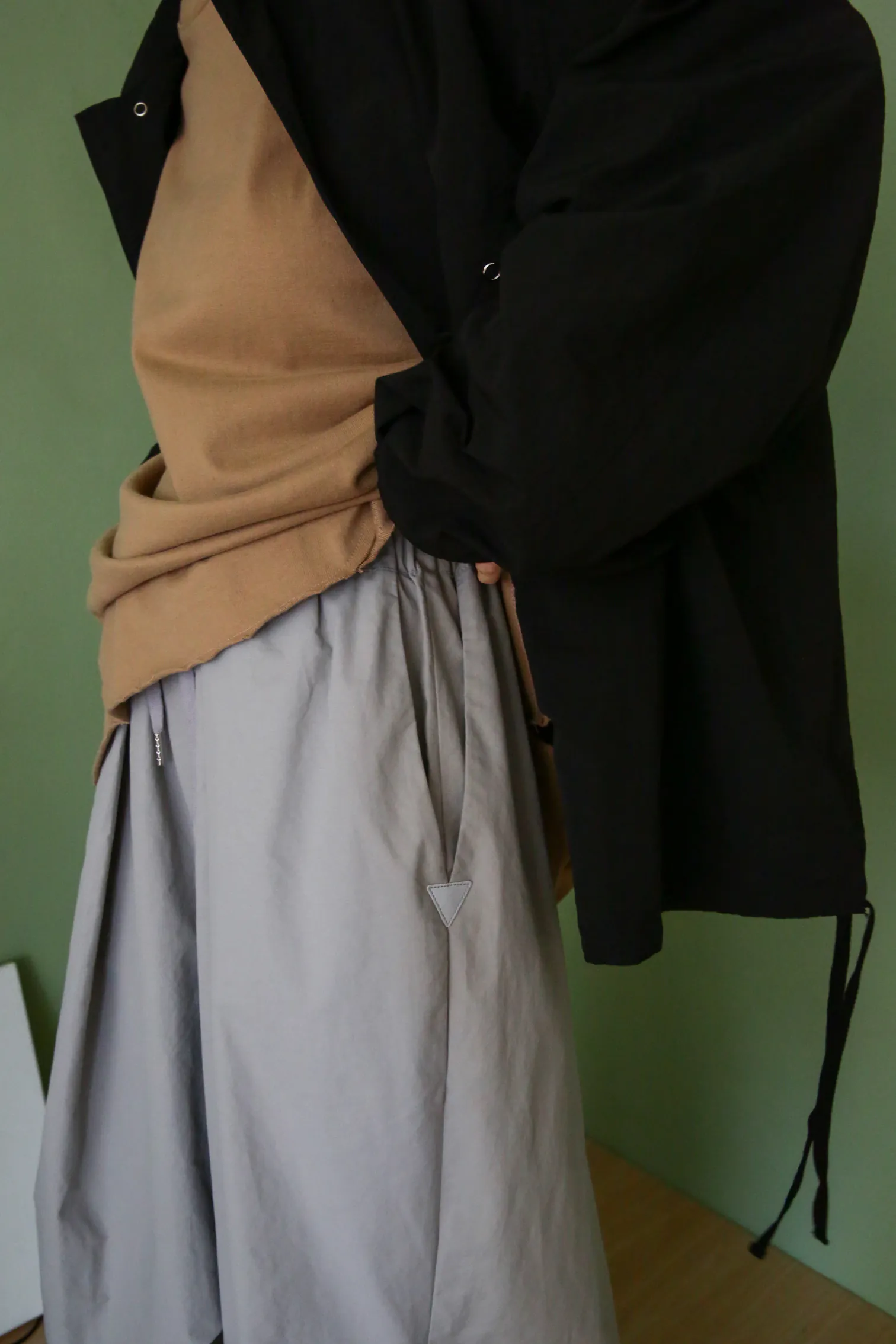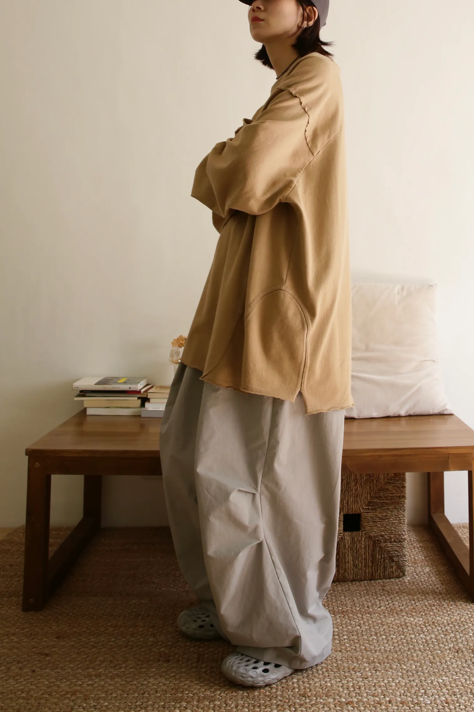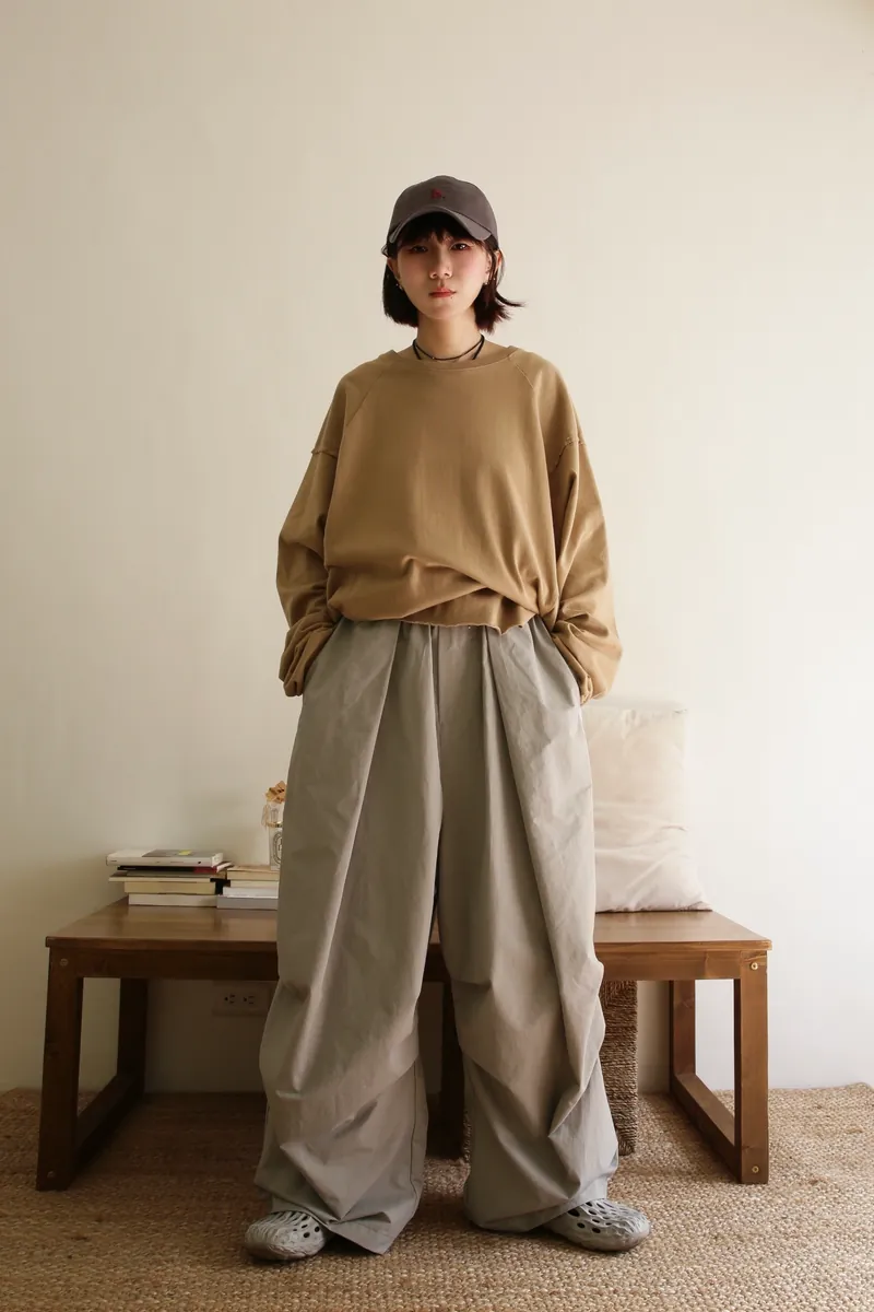 貳玖製造_ 工裝壓摺設計繭型寬褲