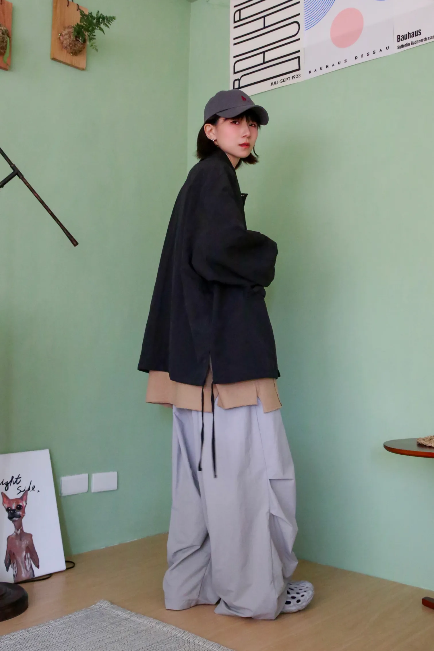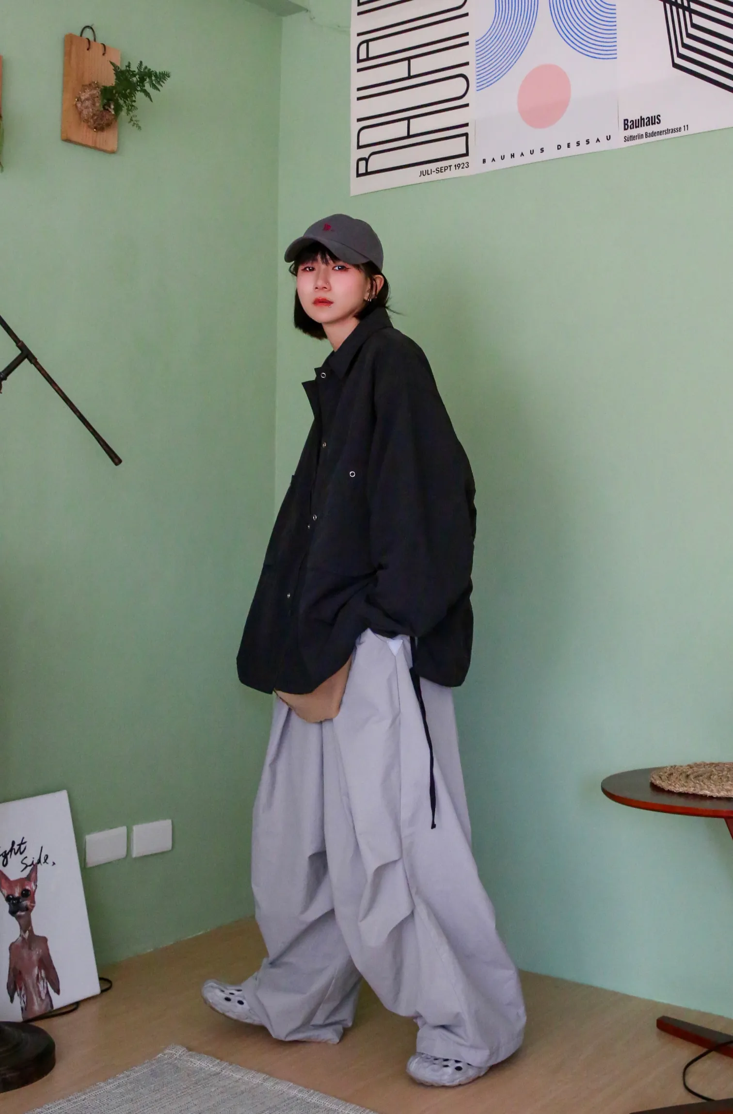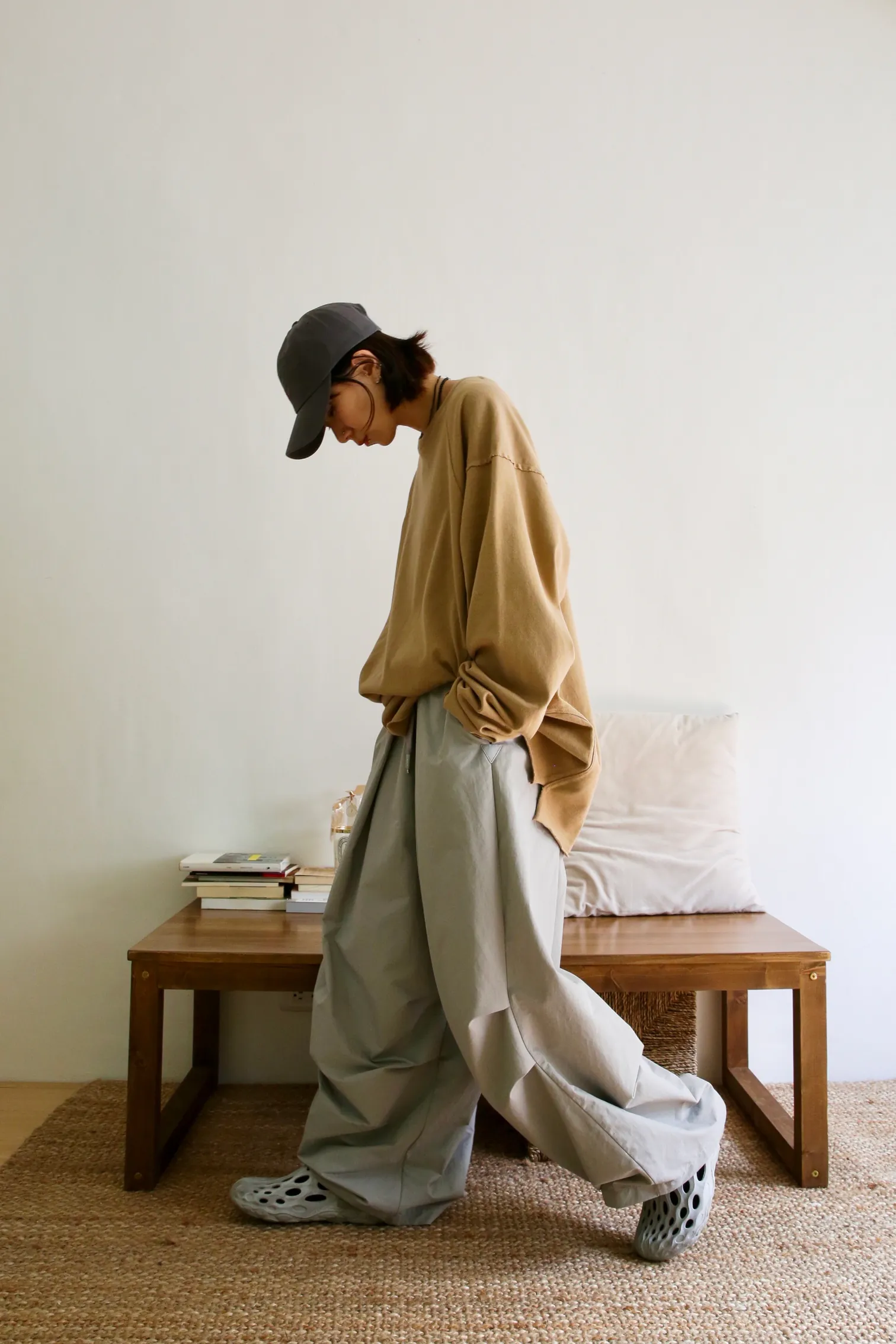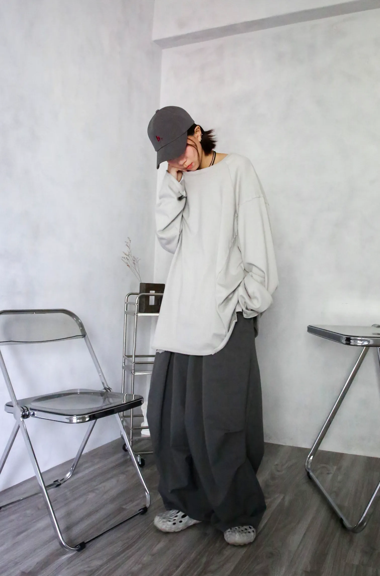 貳玖製造_ 工裝壓摺設計繭型寬褲