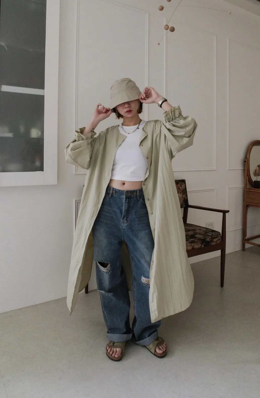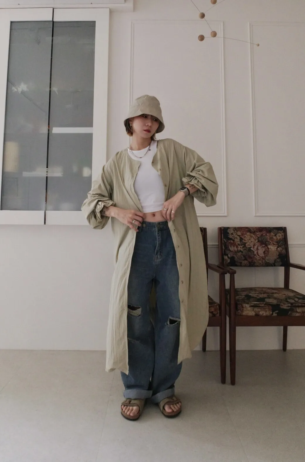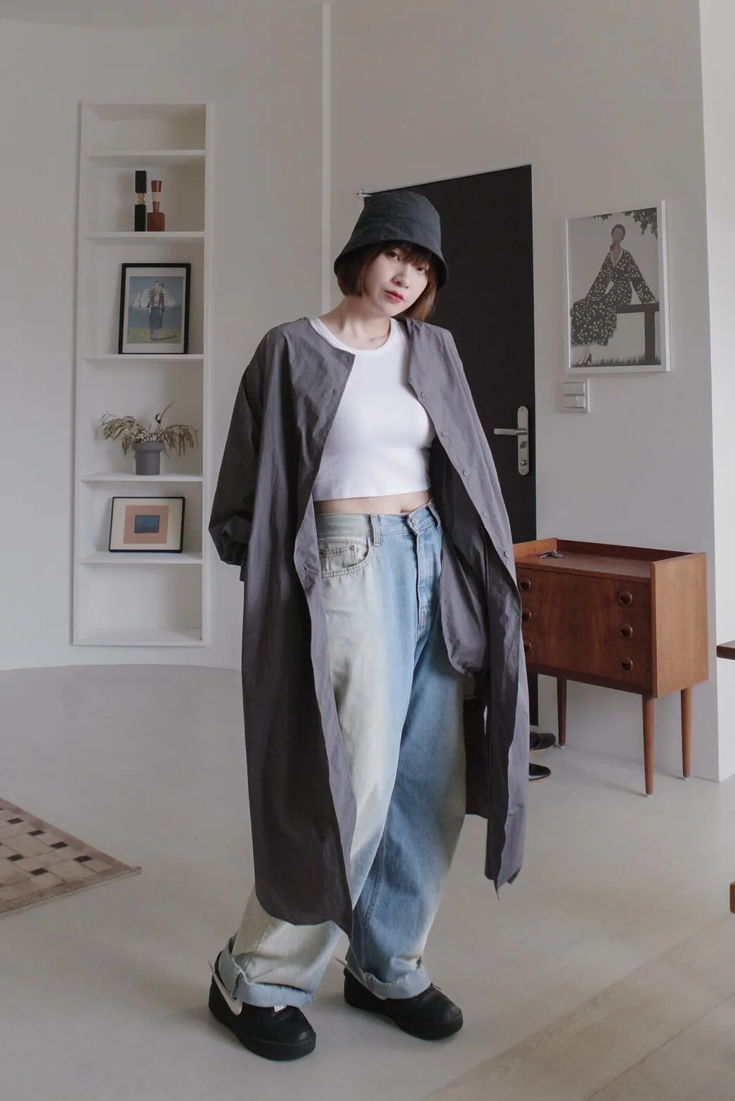 長官妹妹是梨形身材的美女,單穿或搭配自己的寬褲當罩衫穿都各有各的美~