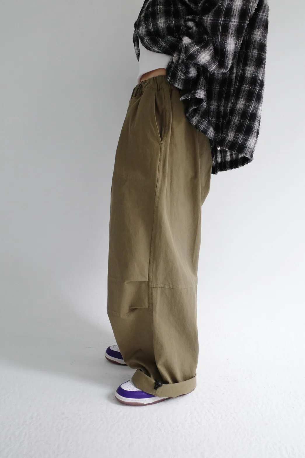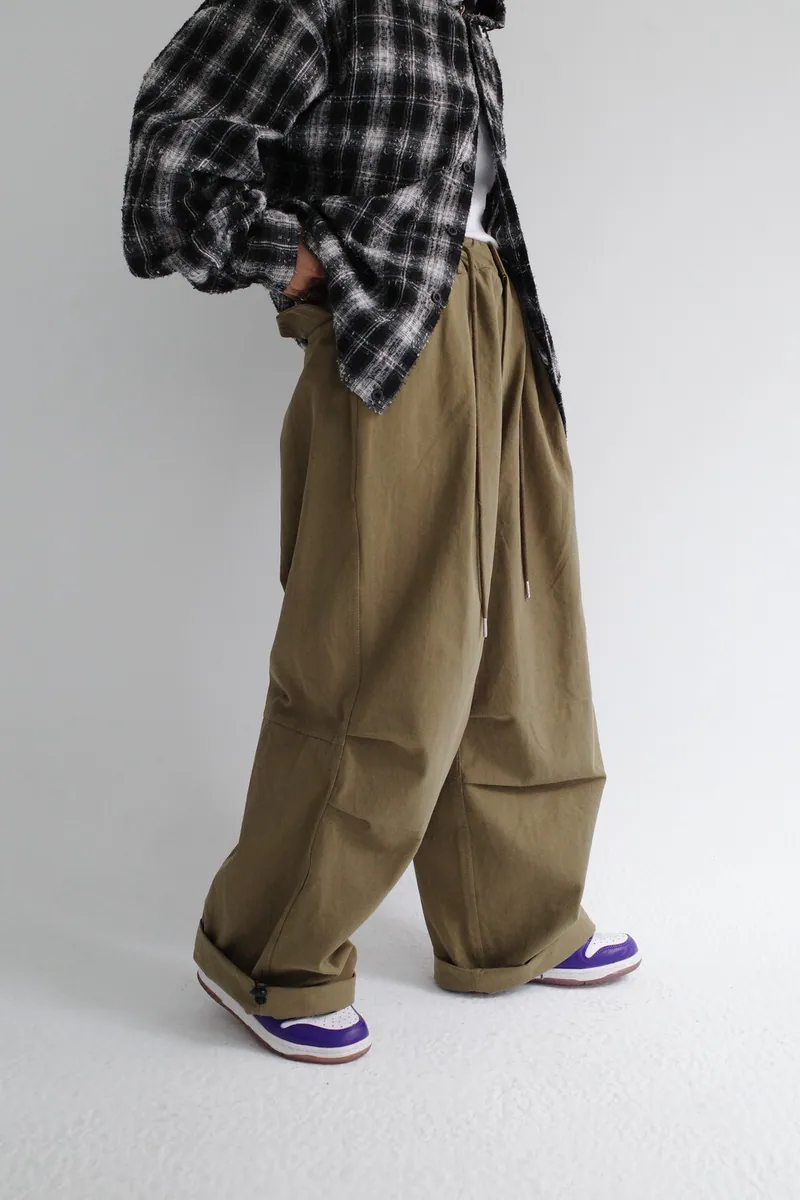 褲頭為 開釦拉鍊/鬆緊綁帶壓釦