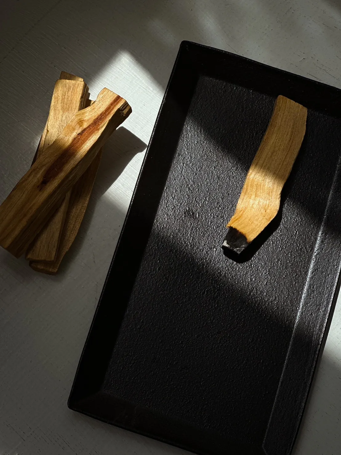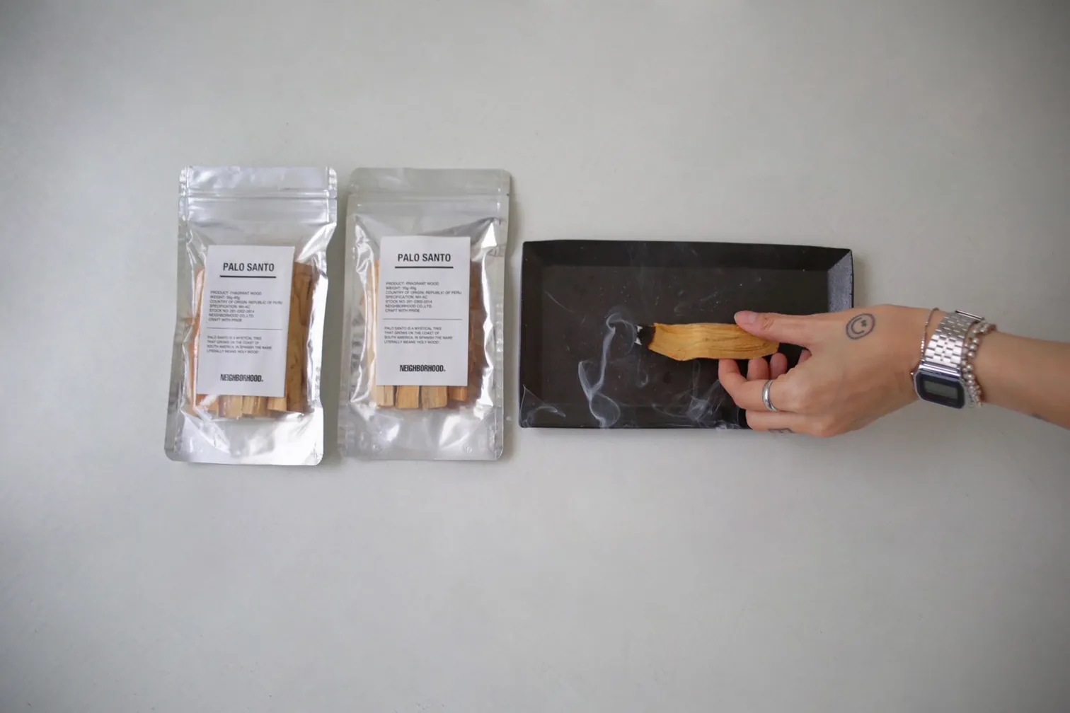取一香木拿打火機點燃至香木頭焦黑後搧熄,隨即進行薰香動作或是擺放在香座上。