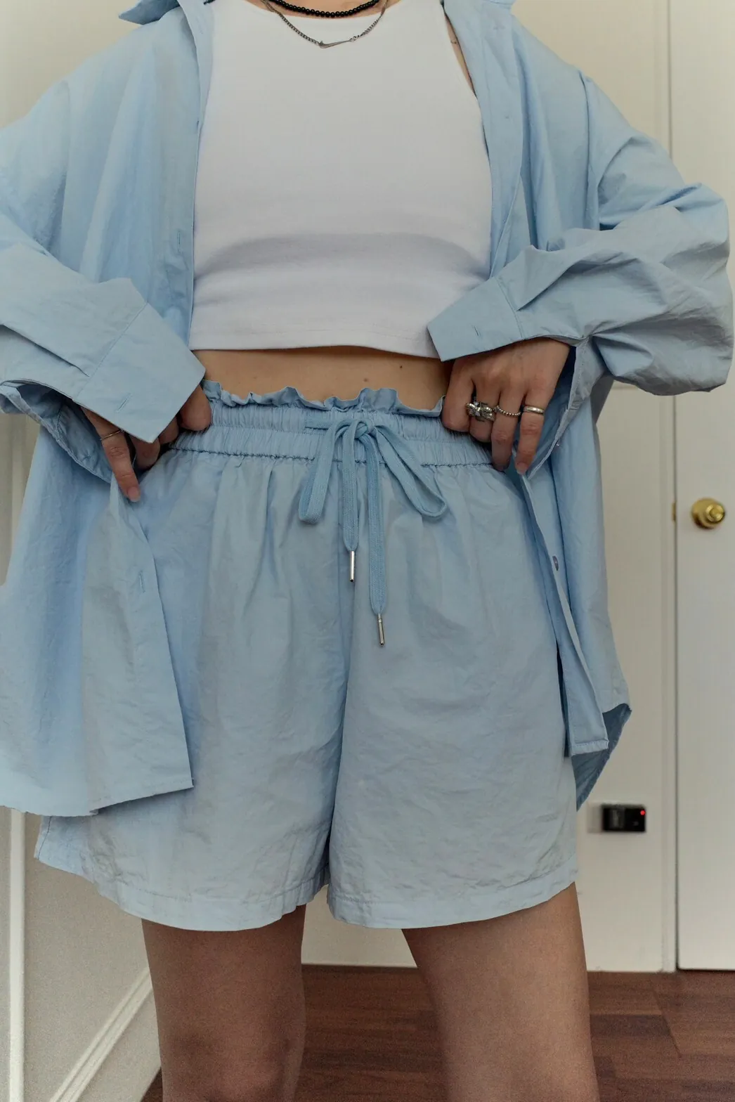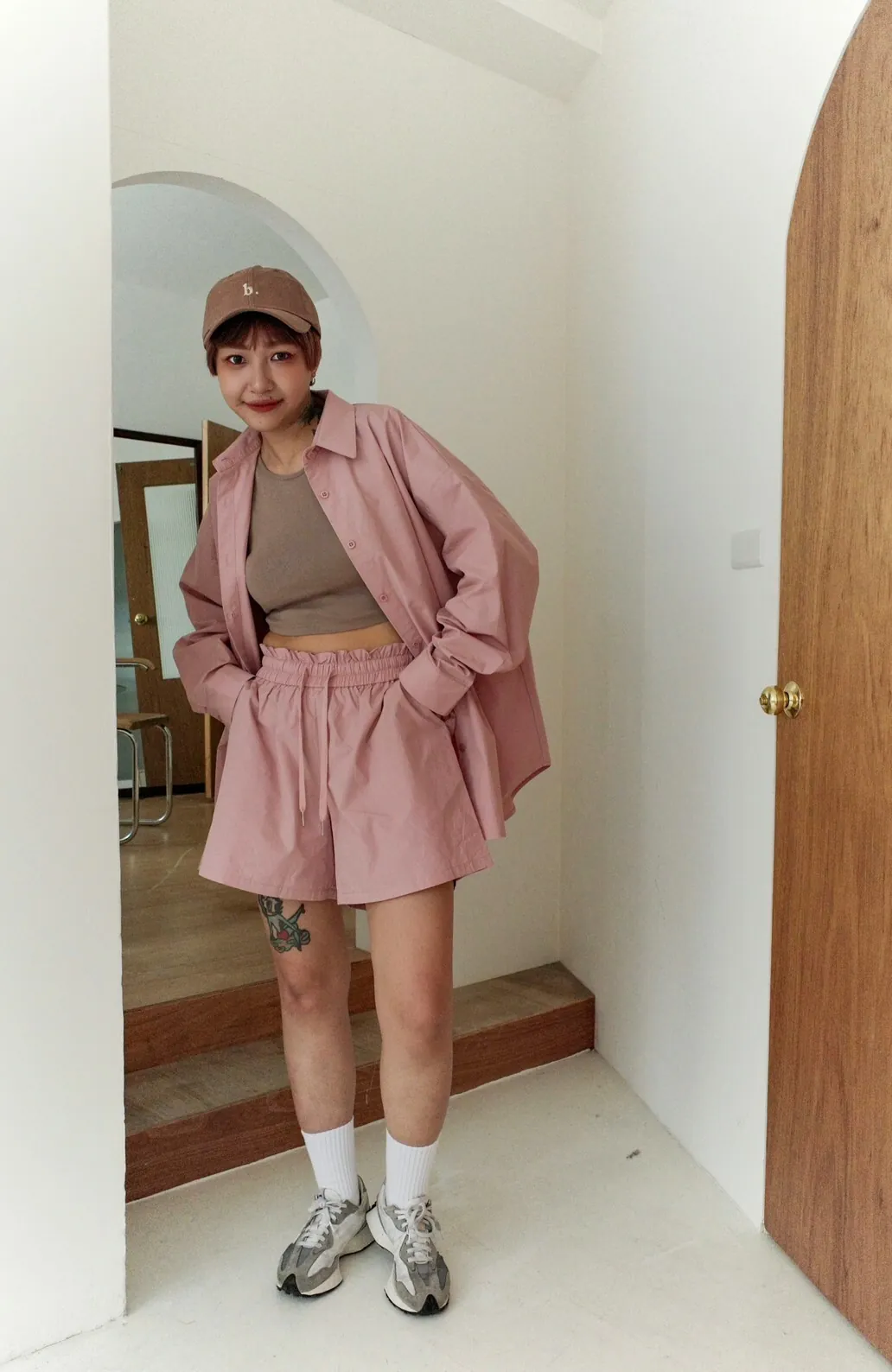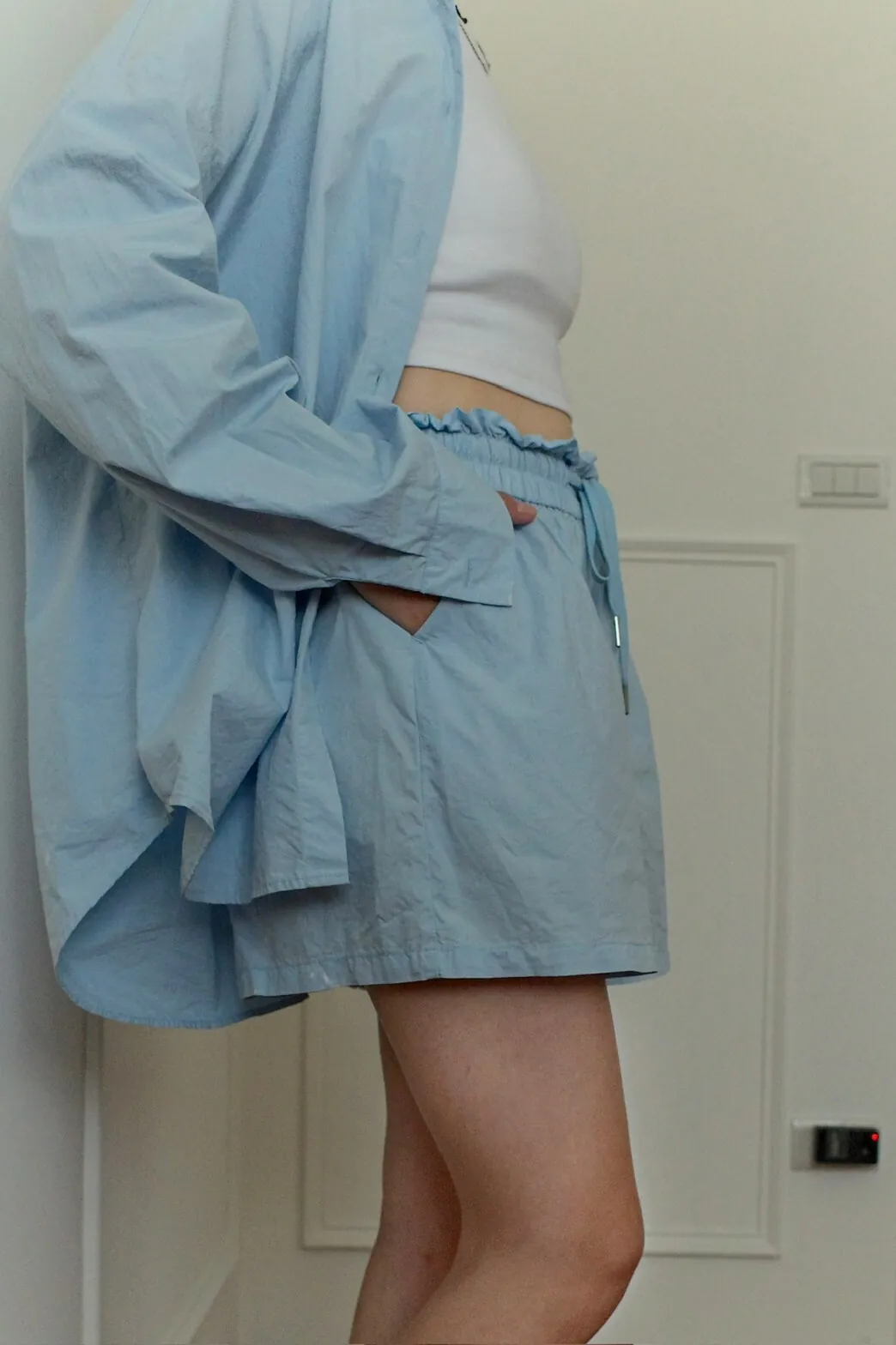 短褲為花苞皺褶全鬆緊帶