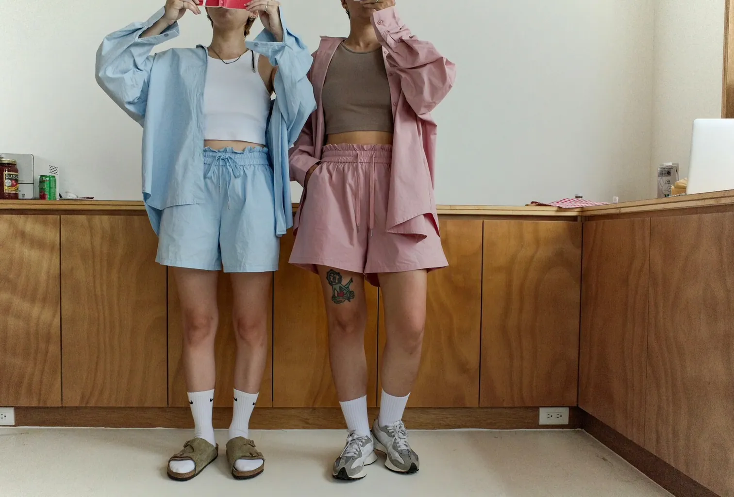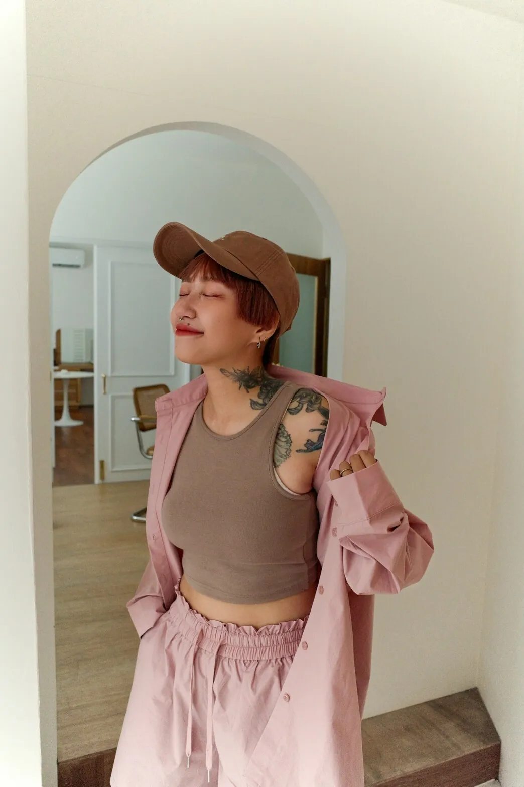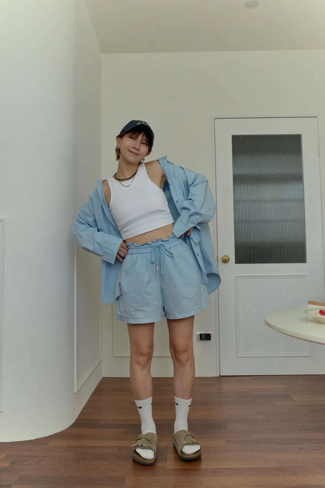 短褲為花苞皺褶全鬆緊帶