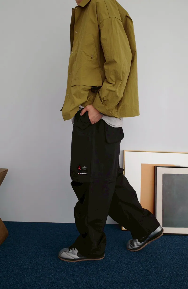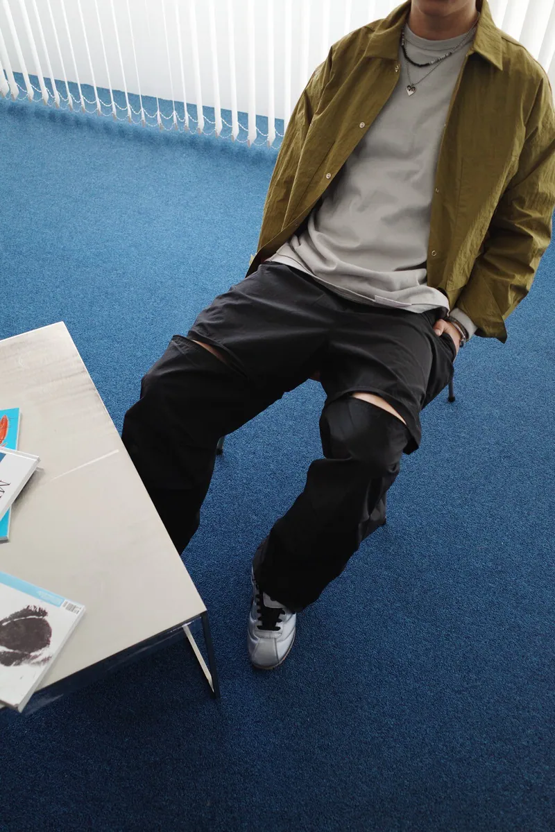 褲頭為全鬆緊綁帶開扣式拉鍊